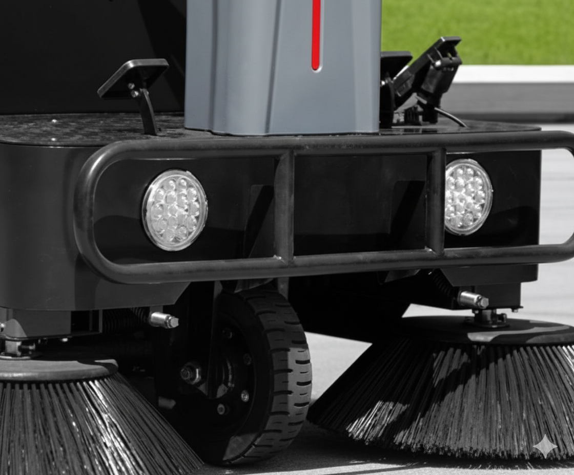 It replaces the labor of over 30 workers, making it a cost-effective cleaning solution. The 110L water tank with front sprinklers prevents flying dust, while the dual-filtration system captures fine particles to ensure a cleaner and healthier environment. Its ergonomic design, LED headlights, and push-pull 120L dustbin make it efficient, safe, and convenient for operators in all conditions.