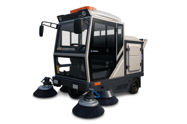 The 180L self-dumping dustbin makes waste disposal convenient and hygienic. Featuring dual side brushes with anti-collision and spraying functions, an ergonomic push-button control panel, and a fully enclosed cab design option, the Sweeper 1900 ensures operator comfort and superior cleaning performance in large areas.